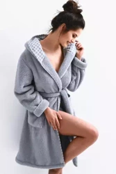 Ciepły puszysty miękki szlafrok soft GIAVANNA, szary