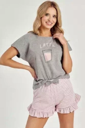 Piżama damska krótka bawełniana z kawą Frankie 3126, szara