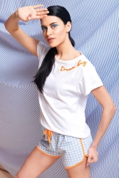 Letnia krótka piżama damska z bawełny Sundari, niebieska