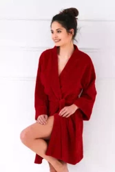 Ciepły puszysty miękki szlafrok soft ROLLING, czerwony