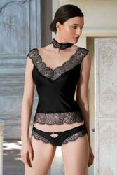 Komplet: satynowa koszulka + szorty ALEXANDRA, granat