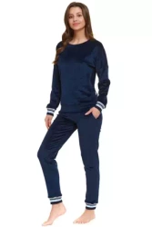 Ciepła Długa Miękka Piżama Damska 5219, granatowa
