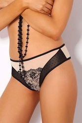 AMBRE BLACK Stringi z koronką i kokardką, czerń