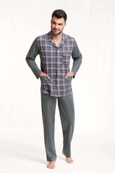Piżama Luna 797 dł/r M-2XL Rozpinana męska grafitowy