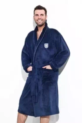 Klasyczny miekki szlafrok męski soft z kołnierzem Borys, navy