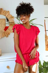 Piżama damska krótki rękaw bawełna polska OFELIA, róż