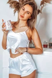 Komplet: satynowa koszulka + szorty CLARISSE, biel