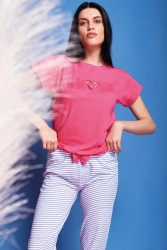 Koszulowa piżama z krótkim rękawem i długimi spodniami Atrani, 100% wiskoza (róż)