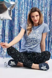 Bawełniana Krótka Piżama Damska GIRLY w gwiazdy, niebieska