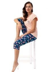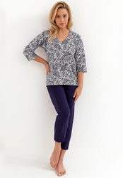 Piżama De Lafense 718 Madeleine dł/r S-2XL damska granatowy kropki