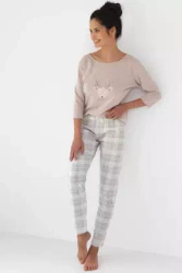 Długa piżama damska z bawełny LENA, beżowa