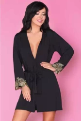 Peniuar De Lafense 734 Brianna S-2XL długi damski czarny-beżowy