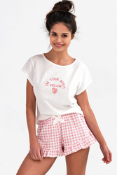 Piżama damska krótka bawełna w serca VALENTINA, biały
