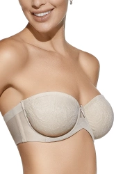 Biustonosz bez ramiączek na fiszbinach SANDRA, tierra-beż