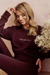 Bluza dresowa bawełniana z napisem Selena 3024, brązowa
