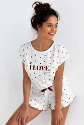 Piżama damska krótka bawełna w serca VALENTINA, biały