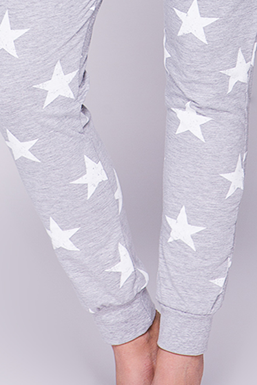 spodnie z nadrukiem w białe gwiazdki, są wykończone ściągaczem, co zapewni