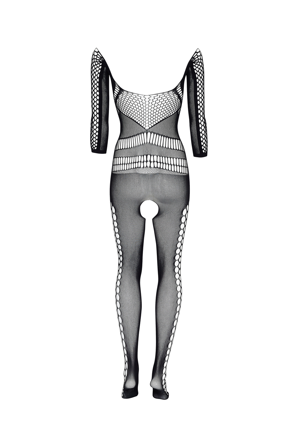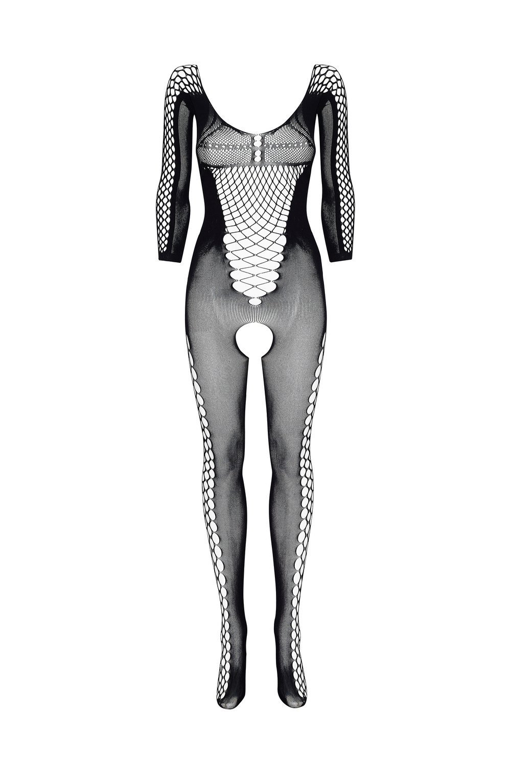 Erotyczne body z siateczki na długi rękaw. Dekolt okrągły. Wykonane z delikatnego rozciągliwego materiału, dzięki czemu idealnie dopasowuje się do sylwetki. Głęboki, okrągły siateczkowy dekolt. Bodystocking z rękawem o długości 3/4. Boki wykończone siateczką o dużych oczkach. Uwagę przyciąga oryginalnie wykończony przód. Komplet w eleganckim opakowaniu ze zdjęciem przedstawiającym produkt, oznakowane hologramem z logo Beauty Night Fashion.