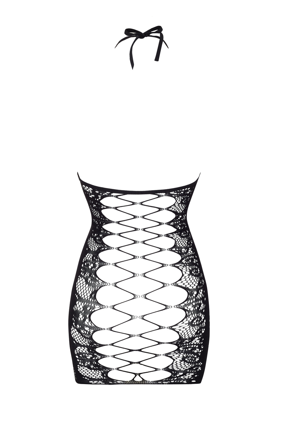 Elisabeth - oryginalna, siateczkowa sukienka mini z wzorem na całej długości. Dekolt koronkowy. Plecy okryte, tył z kuszącym wzorem.