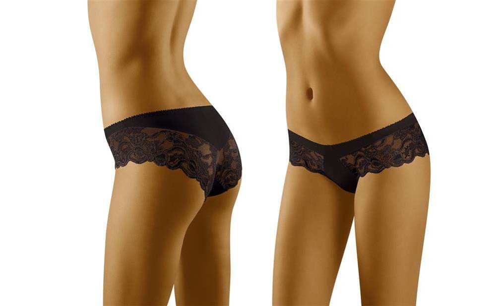 Gustowne figi z koronkowym wykończeniem. Koronka - wykwintnie kwiecista - stylowo zdobi zarówno boki bielizny, jak i sporą część pośladków. Wygodny i zarazem zmysłowy model fig. Skład: 83% poliamid, 17% elastan.