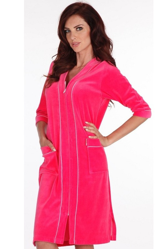 Szlafrok De Lafense 974 Zamek Welur M-3XL damski szary