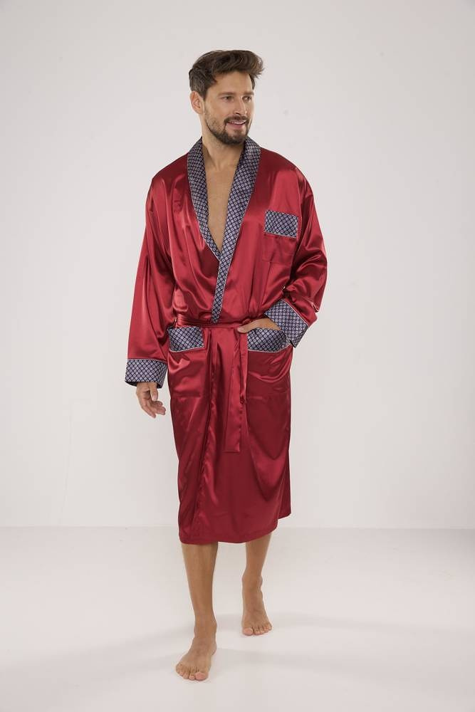 Szlafrok De Lafense 940 Satyna M-4XL męski granatowy