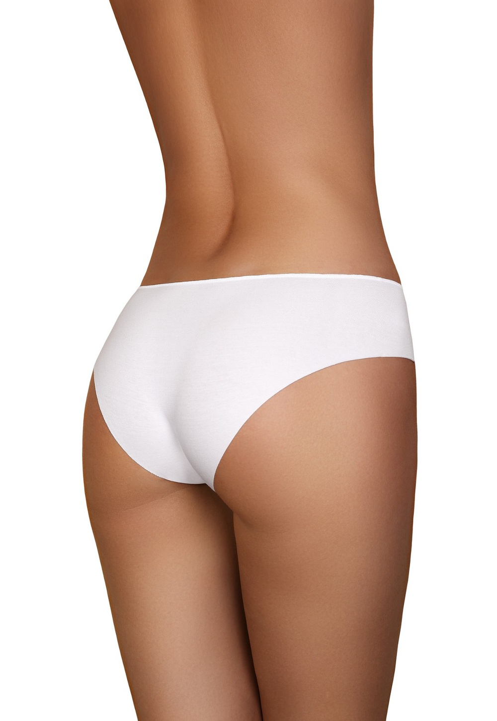 Figi z delikatnej bawełny 85% z dodatkiem microfibry 15%. Ciętej laserowo, płasko wykończone, bezuciskowe, nie odznaczają się pod ubraniem. Pas wykończony delikatną cienką gumką.