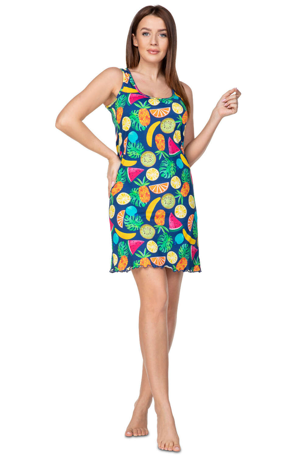 Koszula Regina 390 sz/r S-XL damska granatowy Wzorzysta koszula damska na szerokim ramiączku. Wykonana z kolorowej, milej w dotyku bawełny. Dekolt półokrągły, długość do połowy uda. Skład: 100% bawełny Podmiot odpowiedzialny za ten produkt na terenie UE