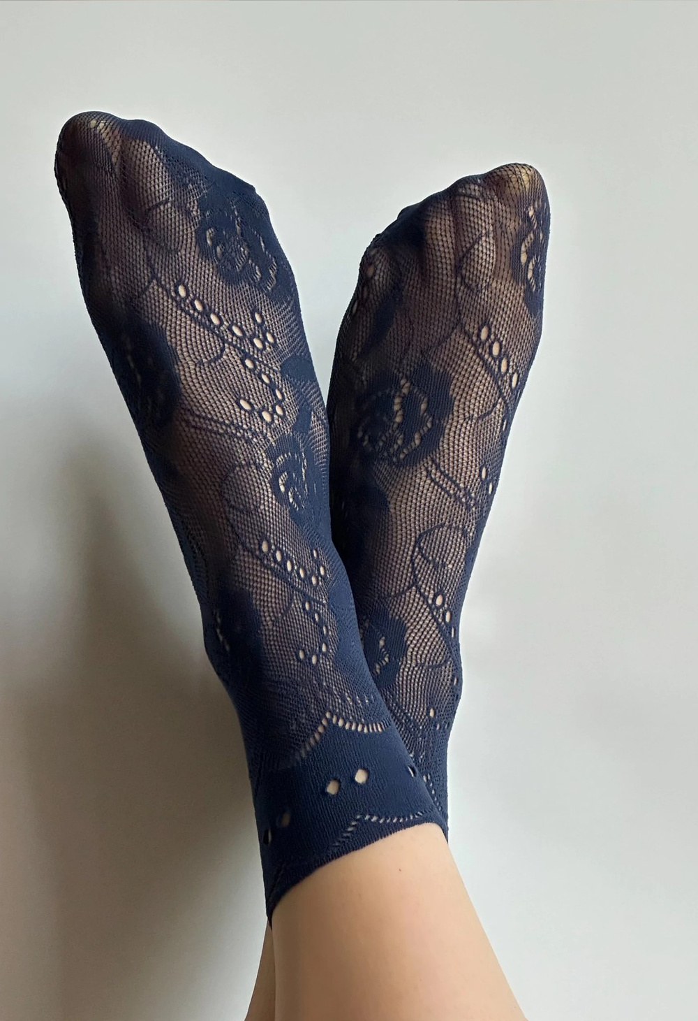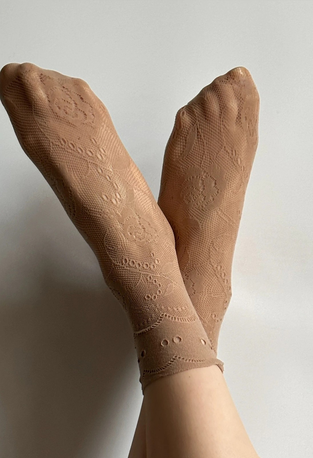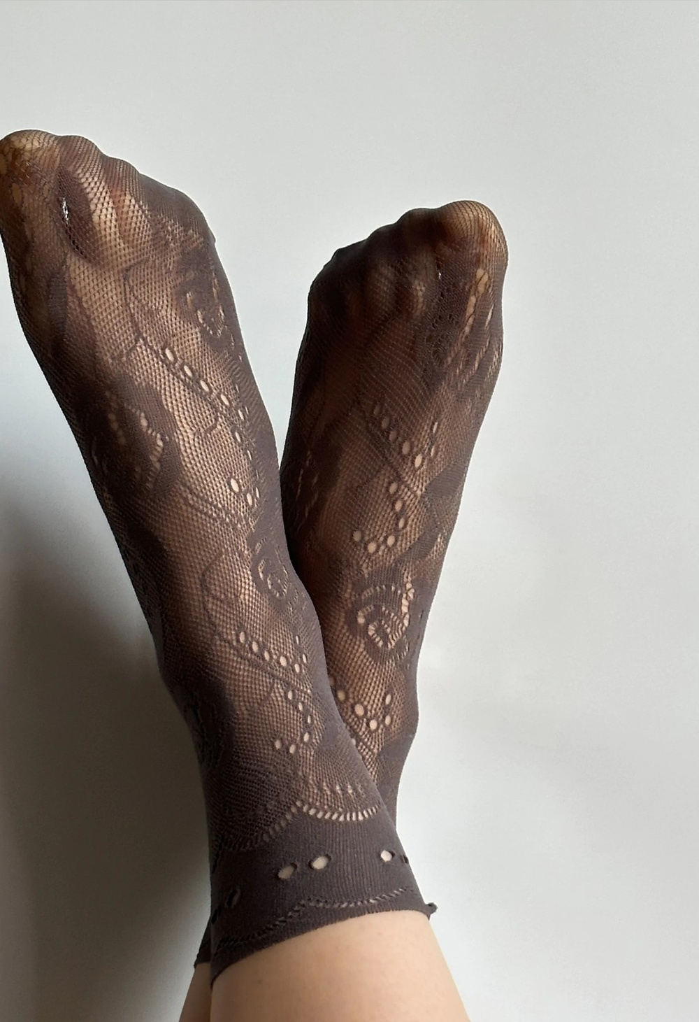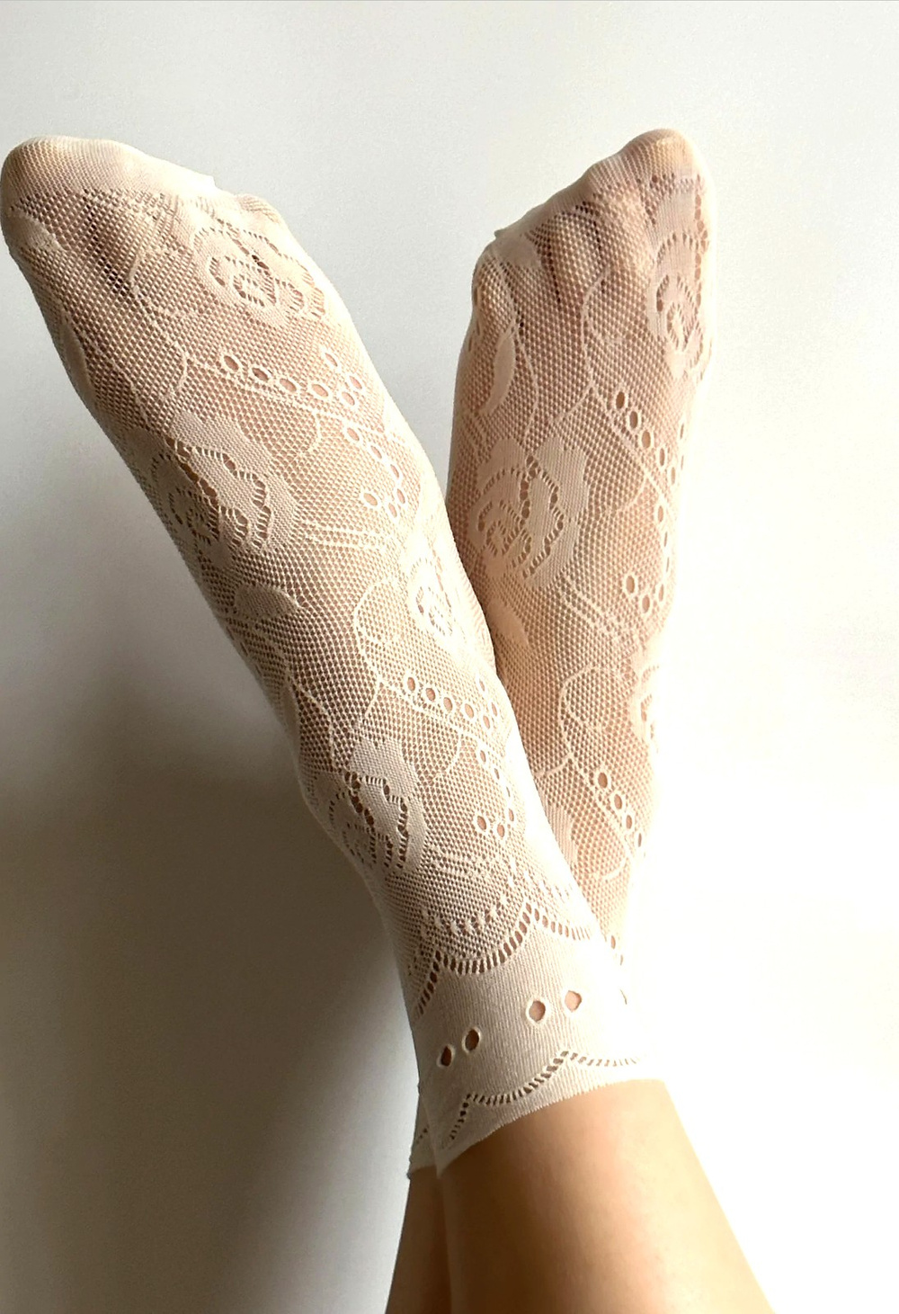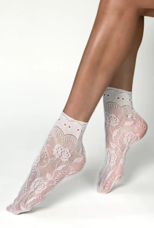 Skarpetki damskie ozdobione ażurowym wzorem. Skład: 90% poliamid, 10% elastan.Podmiot odpowiedzialny za ten produkt na terenie UE