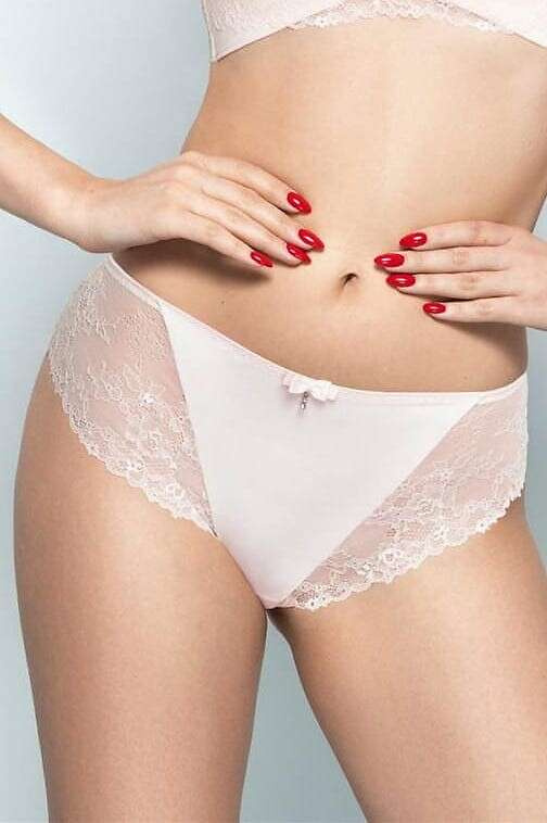 Figi damskie typu brazyliany. Wykonane z gładkiej mikrofibry w połączeniu z efektowną koronką. Boki zabudowane. Skład: 85% poliamid, 15% elastanPodmiot odpowiedzialny za ten produkt na terenie UE