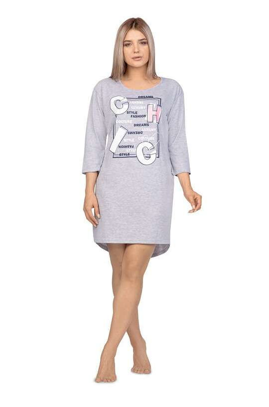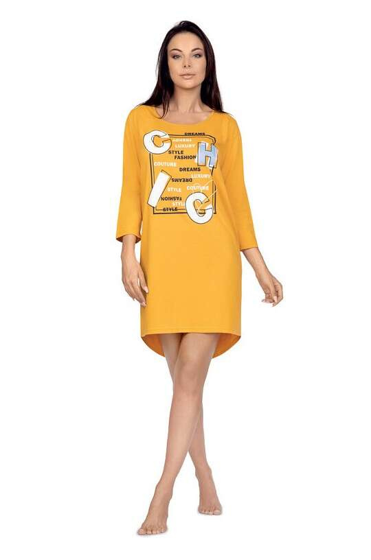 Koszula Regina 403 3/4 S-XL damska żółty/lurex Koszula damska- wysoka jakość bawełny- z przodu zdobiona kolorowym nadrukiem- dekolt półokrągły- rękaw o długości 3/4- długość przed kolano- asymetryczny tył Skład: 100% bawełna Podmiot odpowiedzialny za ten produkt na terenie UE