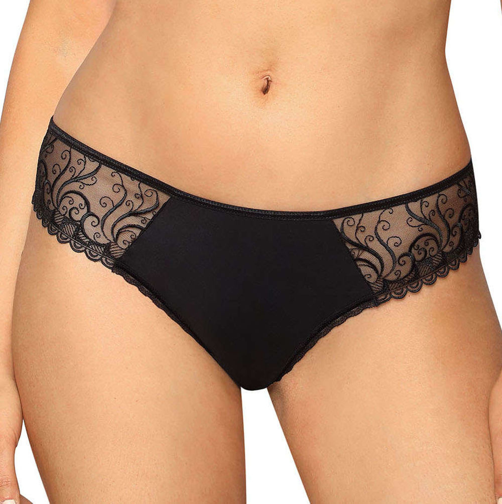 Wyjątkowy design: Elegancki przód uszyty z wysokiej jakości materiałów. Po bokach urocza koronka. Tył z ozdobnego, przezroczystego tiulu.