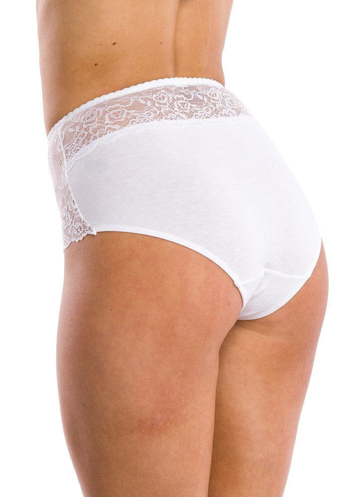Figi Key LPF 280 B21 A'2 biały Figi damskie, wyżej zabudowane- z szerszymi bokami- wykonane z wysokiej jakości, gładkiej bawełny- boki z wstawkami elastycznej koronki - pakowane w pudełko po dwie sztukiSkład: 95% bawełna, 5% elastan Podmiot odpowiedzialny za ten produkt na terenie UE