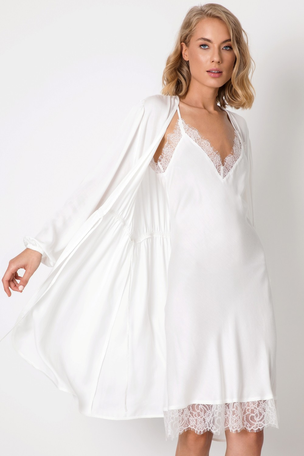 Koszula z wiskozy na ramiączka koronka IRIS, biel