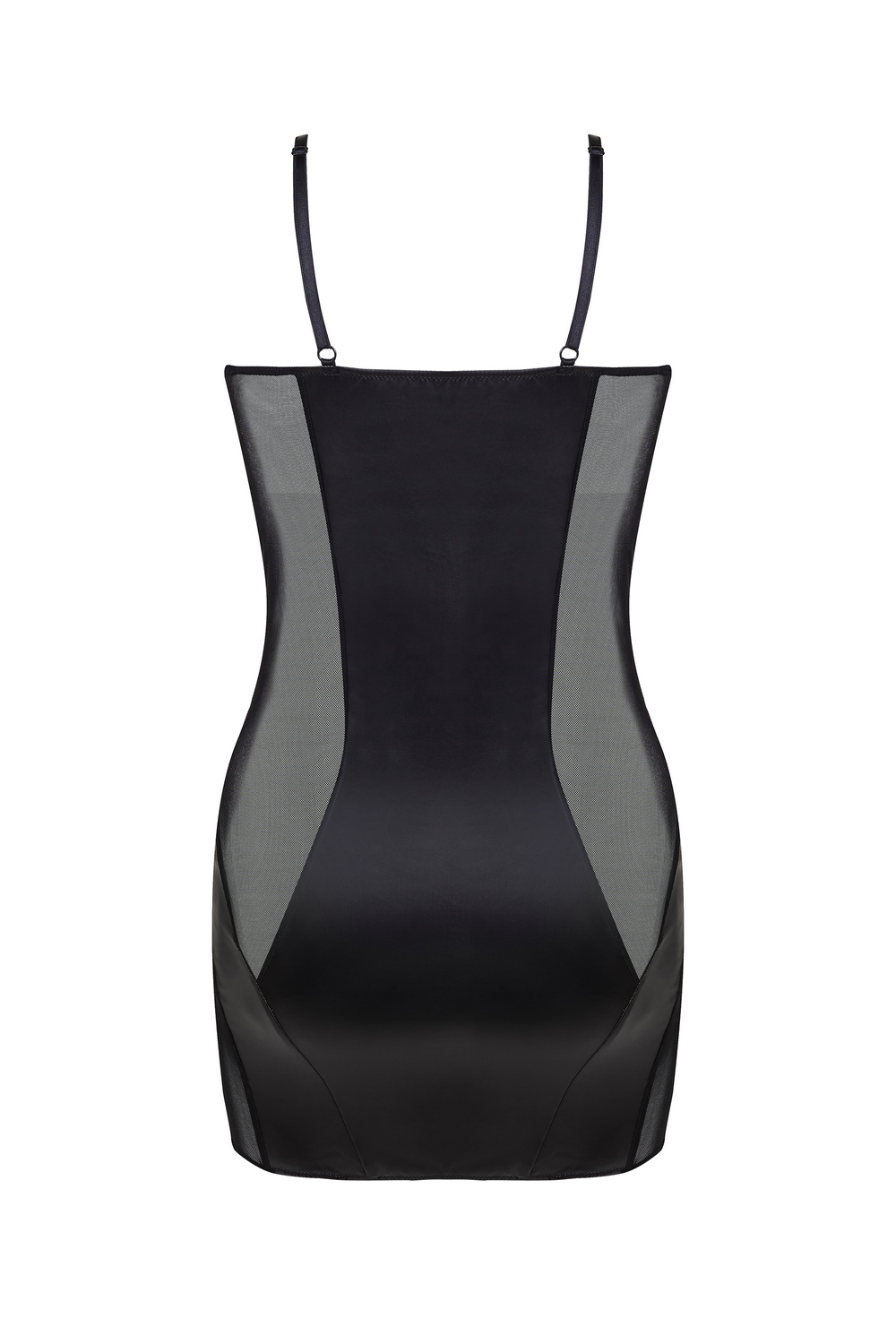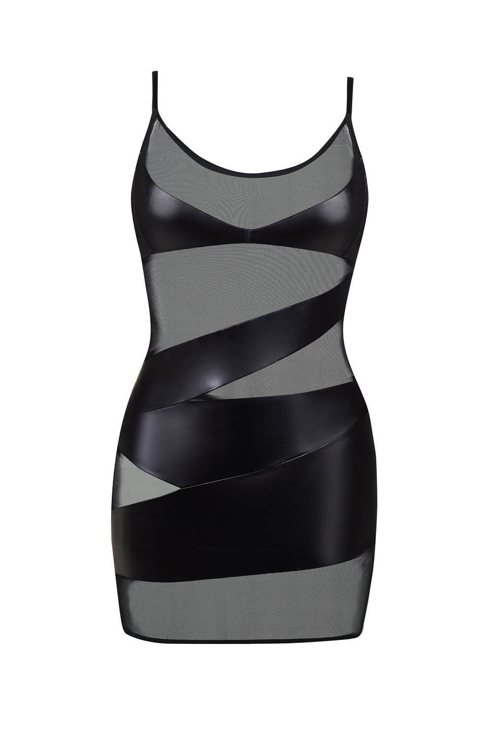Seksowna sukienka wykonana z błyszczącego materiału oraz tiulu. W komplecie stringi.