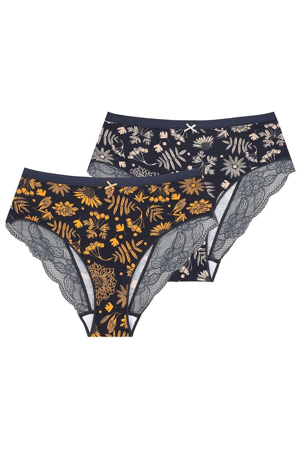 Klasyczne figi damskie- krój typu bikini- wykonane z wysokiej jakości bawełny- tył zdobią koronkowe wykończenia- w pasie płaska wygodna gumka - pakowane w pudełko po dwie sztukiSkład: 95% bawełna, 5% elastan; koronka 90% poliamid, 10% elastan
