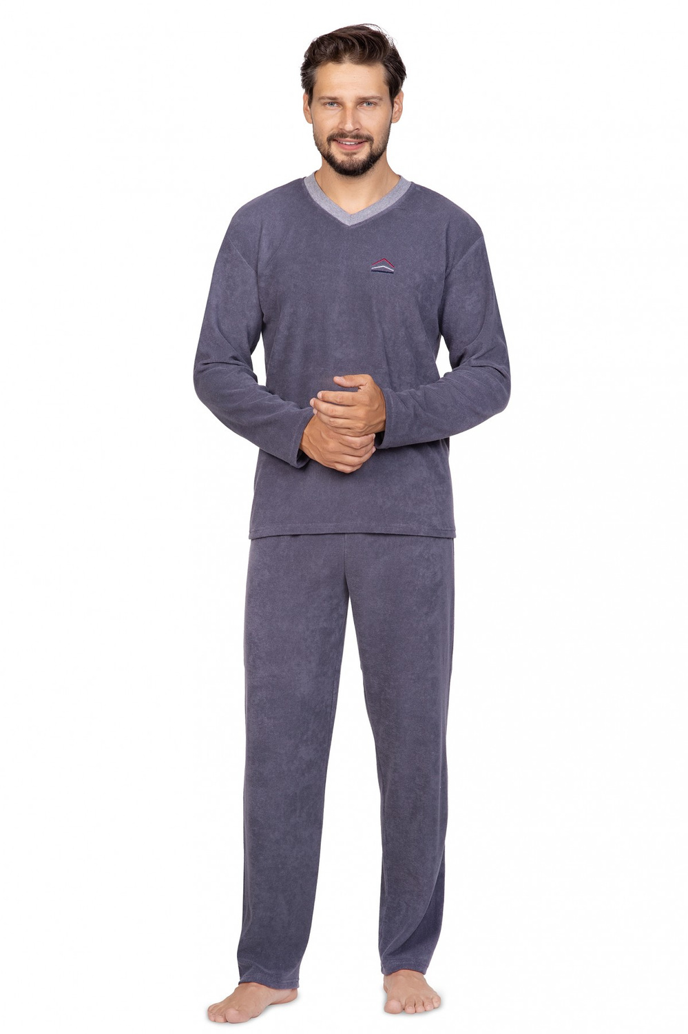 Piżama męska frotte- koszulka z długim rękawem- dekolt w kształcie litery V- do kompletu długie, gładkie spodnieSkład: 80% bawełna, 20% poliesterPodmiot odpowiedzialny za ten produkt na terenie UE