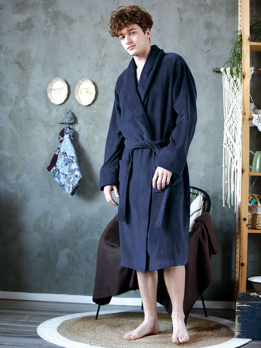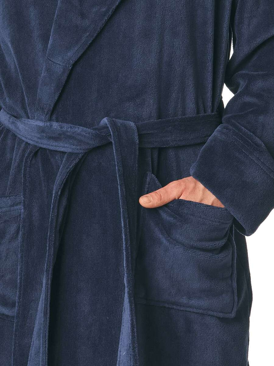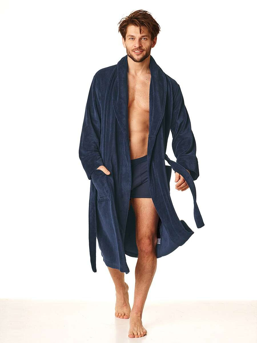 Szlafrok męski- z miękkiej dzianiny- wiązany w pasie- kołnierz szalowy- długi rękaw- dwie zewnętrzne kieszenieSkład: 100% poliester Podmiot odpowiedzialny za ten produkt na terenie UE