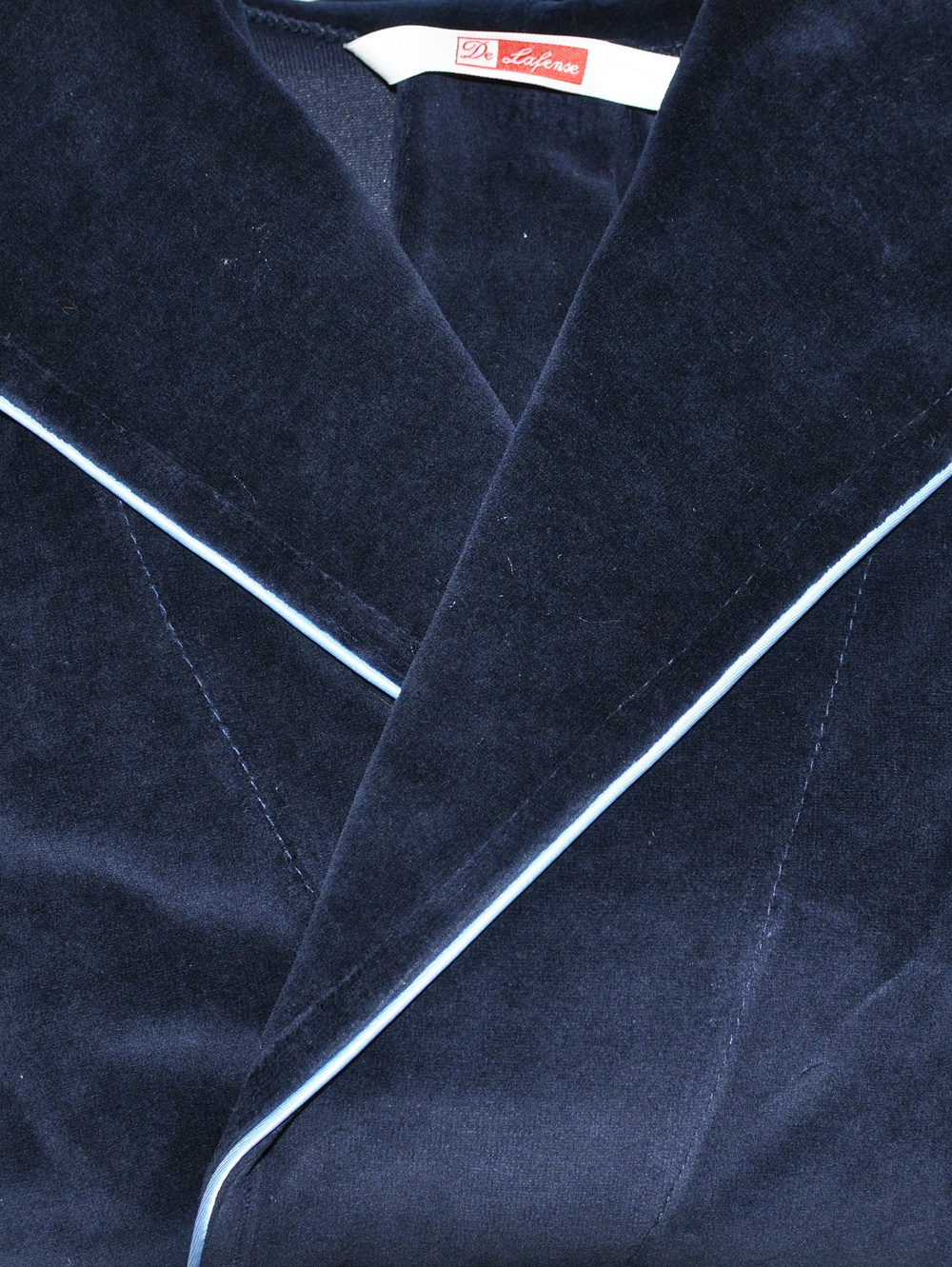 Długi, wygodny szlafrok damski z kapturem- wykonany z miłego i przyjemnego dla ciała weluru- wiązany w pasie, z kieszeniami- obszyty lamówką z satyny Na zdjęciu brak kaptura Skład: 80% bawełna, 20% poliamid