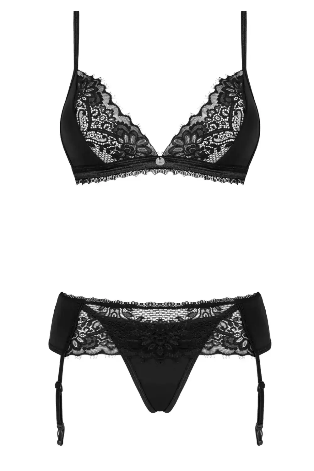 Koronkowy komplet MADERRIS SET 3-części, czarny