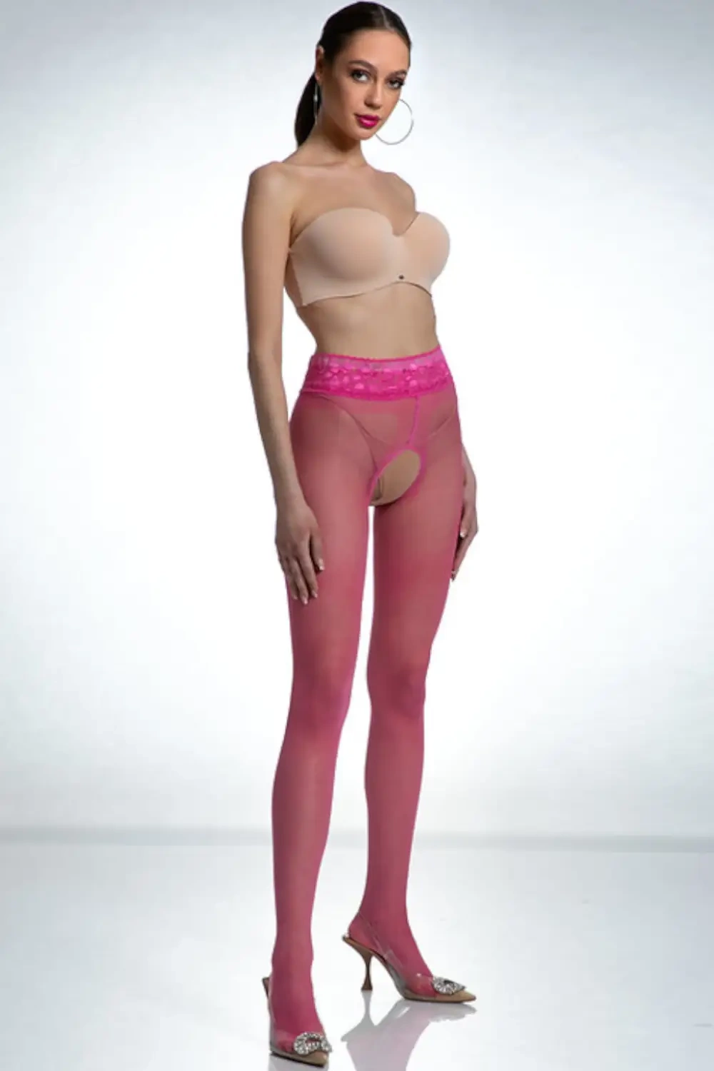 HIP LACE 30 DEN Rajstopy z wycięciem w kroku, magenta