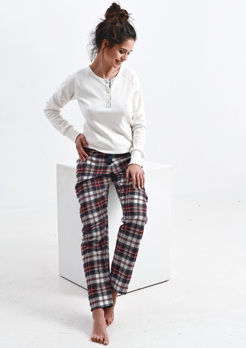 Piżama Sensis Mollie Interlock/Flanela dł/r S-XL śmietanowy