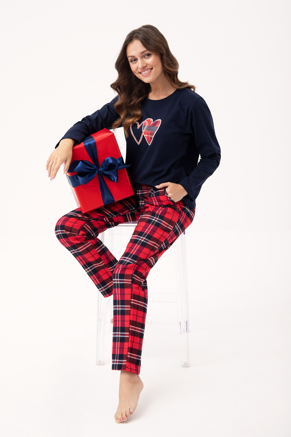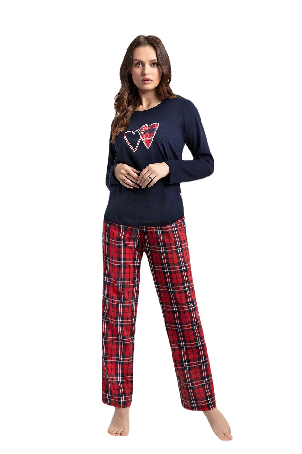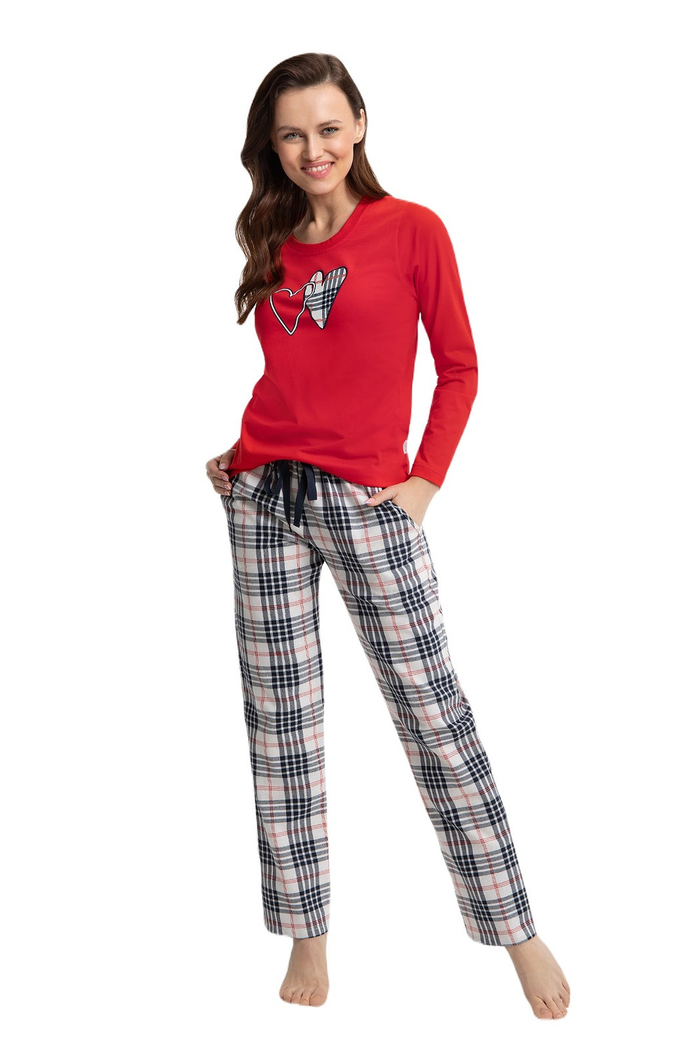 Piżama Luna 657 dł/r Flanela M-2XL damska czerwony-biały
