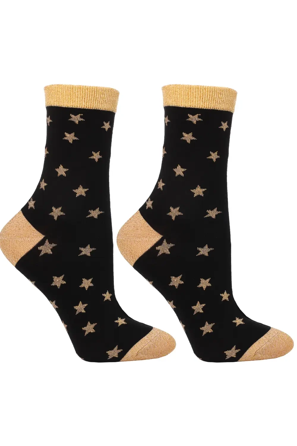 Urocze skarpetki z motywem świątecznym. Skarpetki posiadają pozłacane nitki, co dodaje całości elegancji. Miła i przyjemna w dotyku tkanina zapewniająca komfort użytkowania. Eleganckie pudełeczko sprawdzi się idealnie jako prezent gwiazdkowy. Pudełko posiada wygodny uchwyt w postaci wstążki. Skarpetki sprzedawane w 3-paku. Zalecane pranie w 40 stopniach Celsjusza.