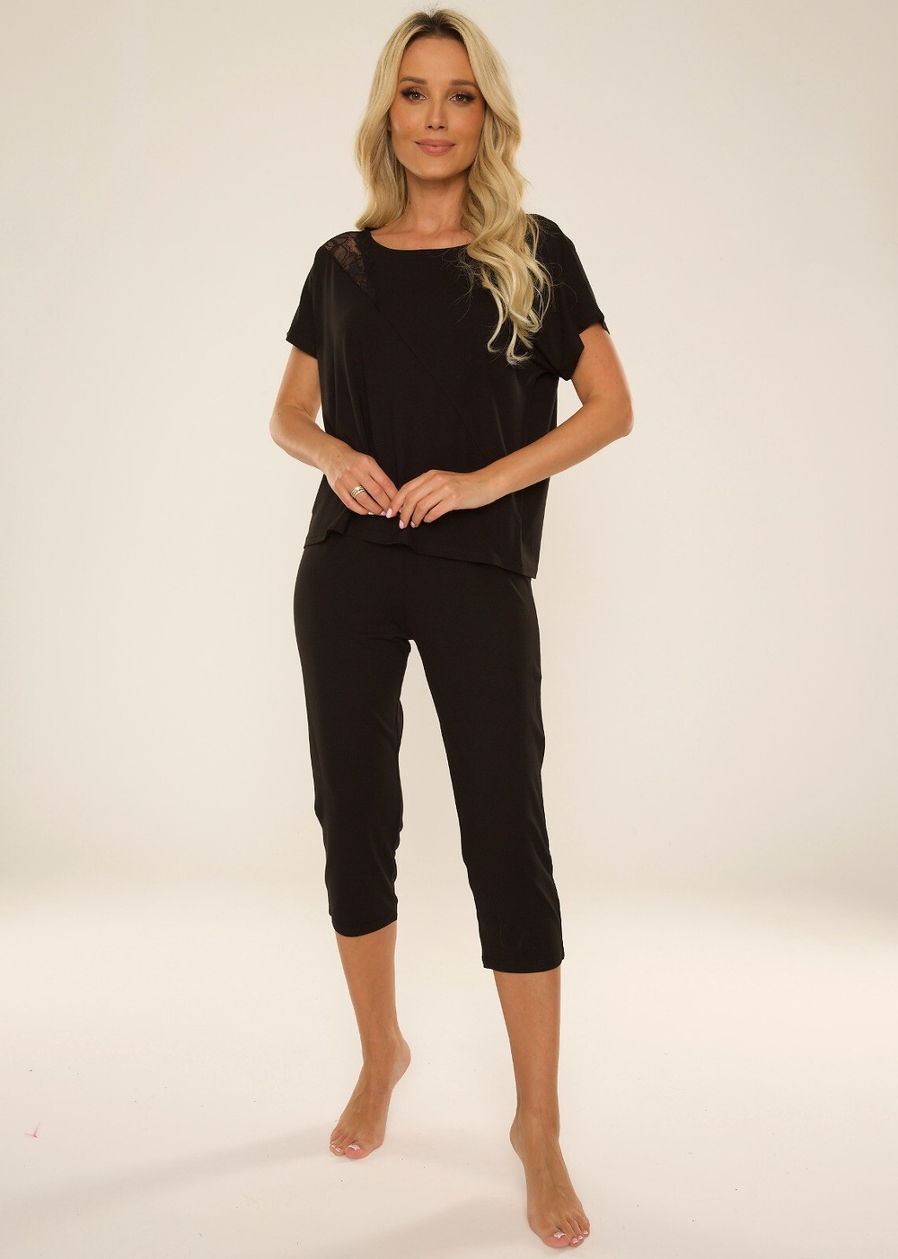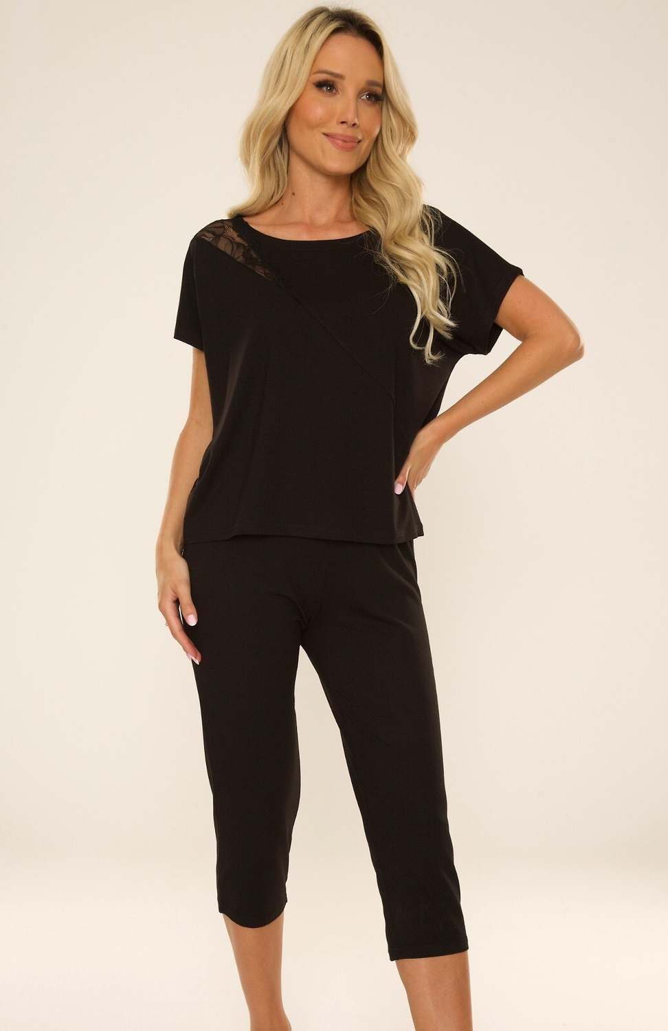 Piżama De Lafense 740 Velar kr/r S-2XL czarny Piżama damska