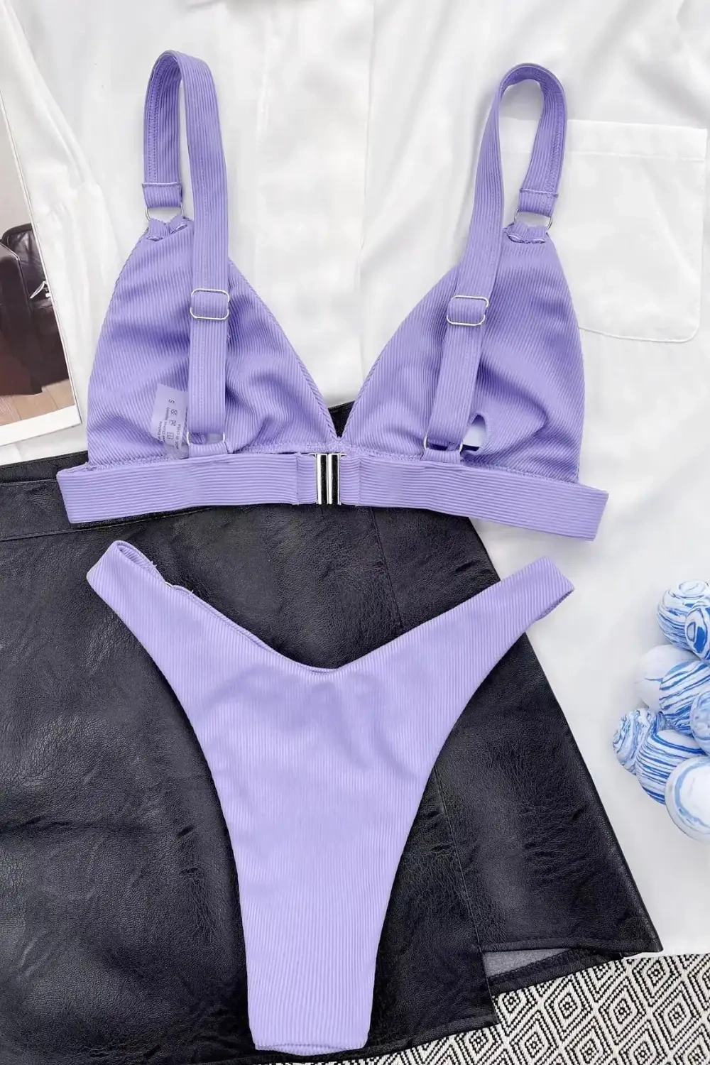 Strój kąpielowy usztywniane bikini w prążek RODOS, fiolet