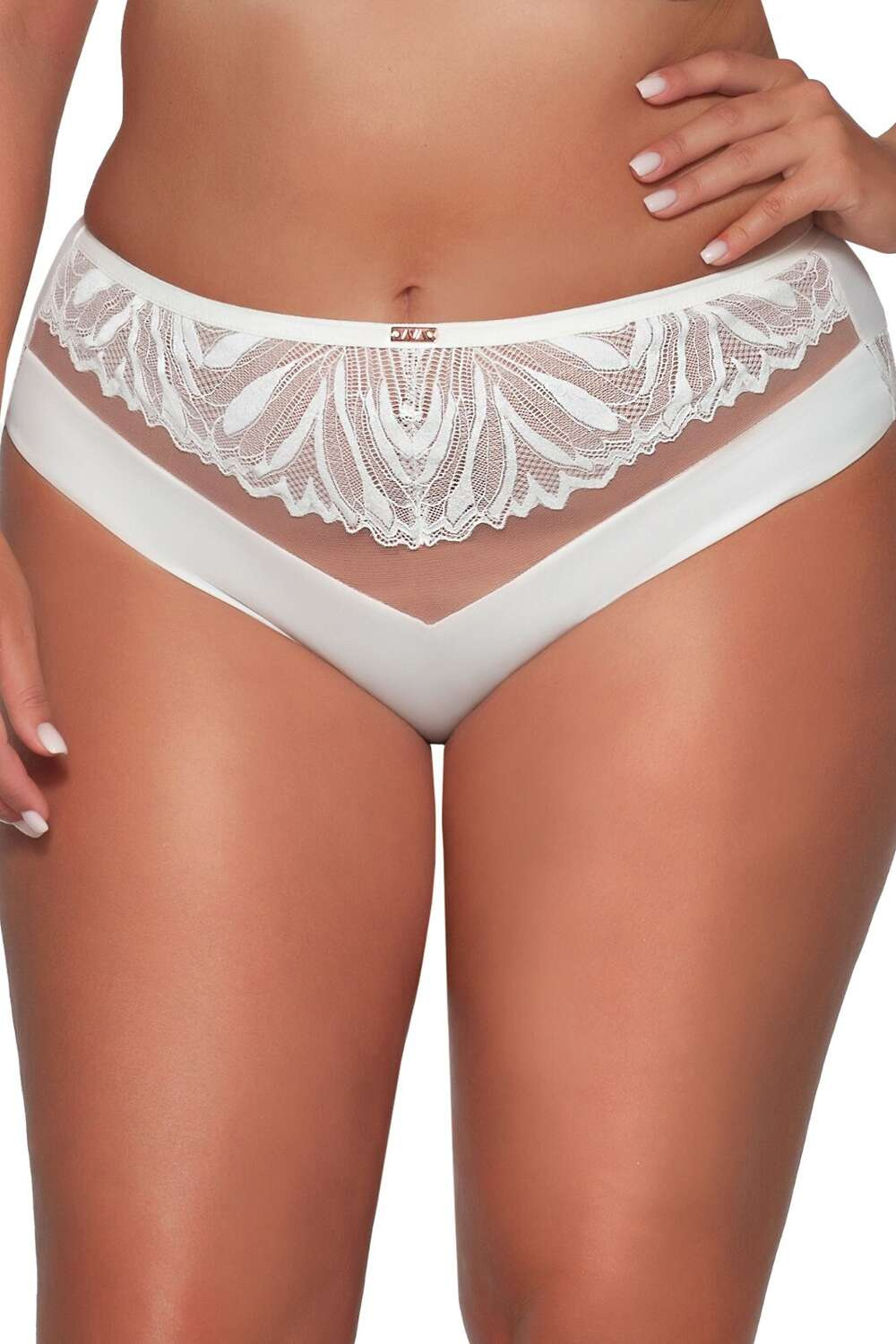 Figi damskie - z koronki, delikatnej siateczki i gładkiej mikrofibry - w talii płaska gumka Skład: 91% poliamid, 5% bawełna, 4% elastan