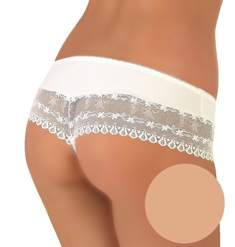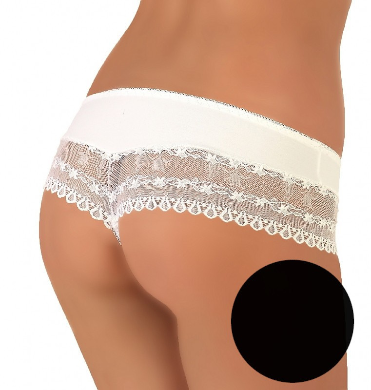 Stringo-szorty damskie- z gładkiej bawełny- boki i tył z efektownej koronki o kwiatowym motywieSkład: 95% bawełna, 5% elastanPodmiot odpowiedzialny za ten produkt na terenie UE
