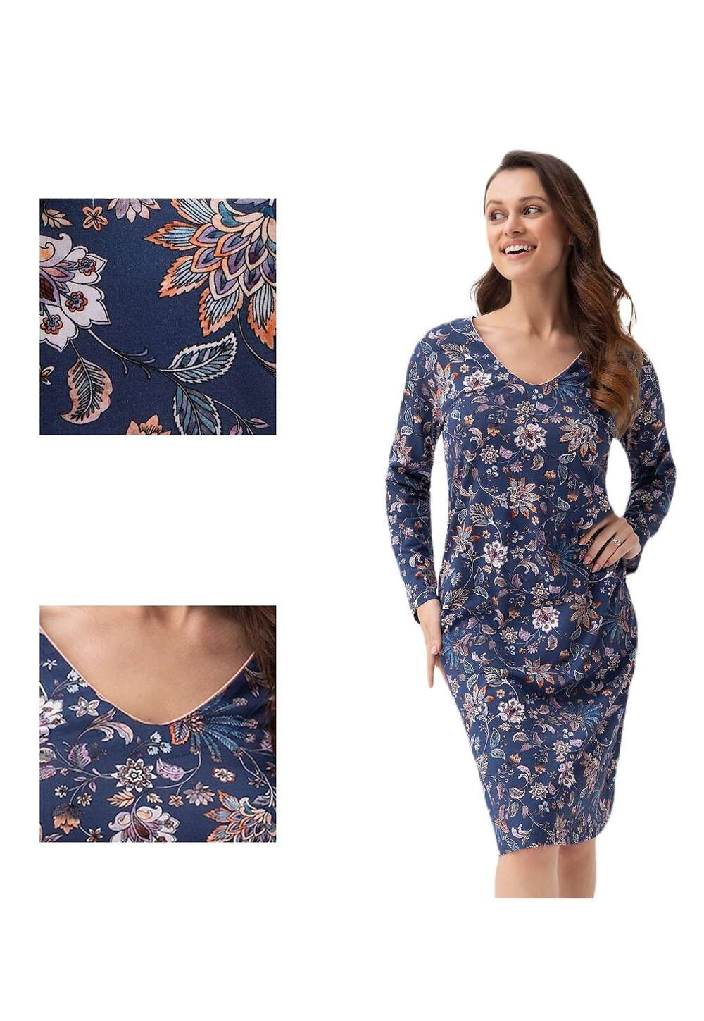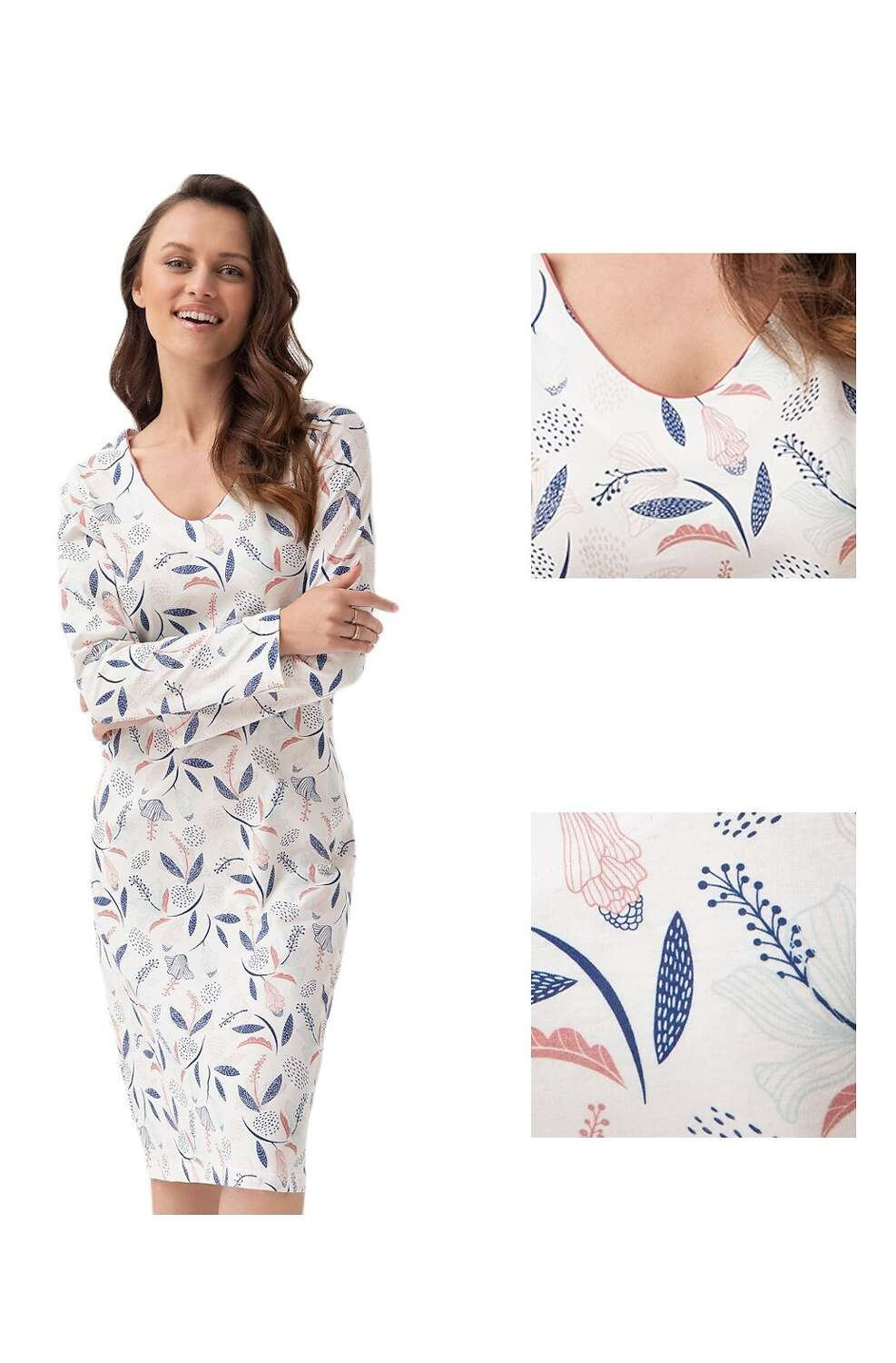 Koszula Luna 275 dł/r M-2XL Z25 damska kremowy-kwiaty