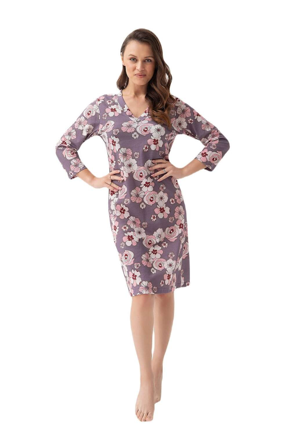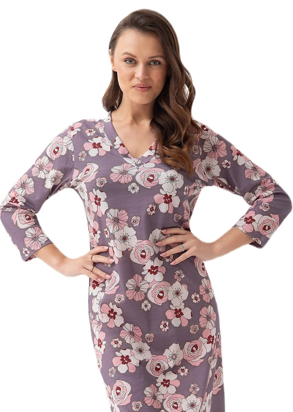 Koszula Luna 197 3/4 S-2XL damska wrzosowy-kwiatki